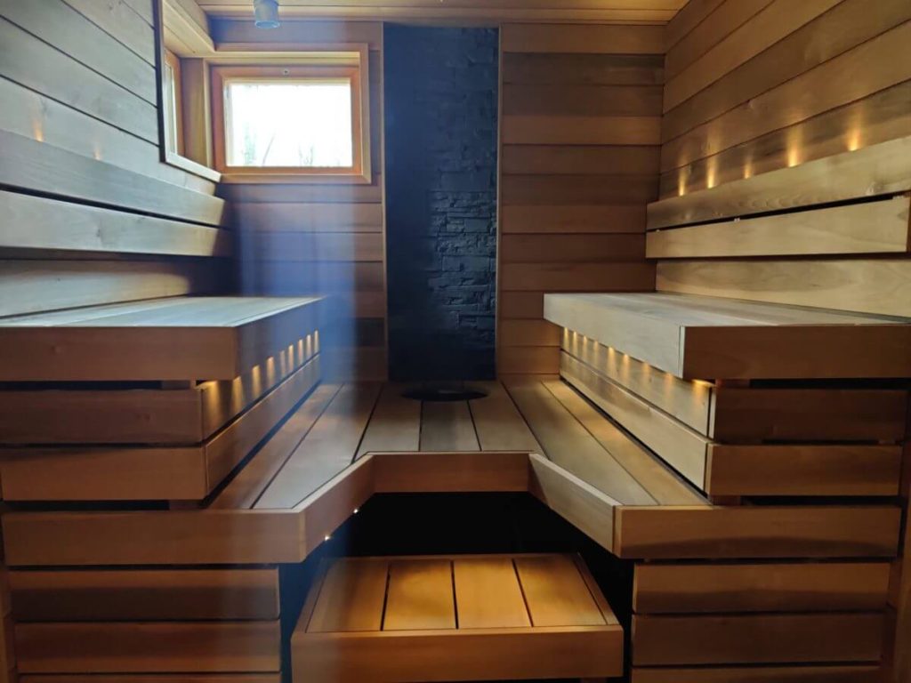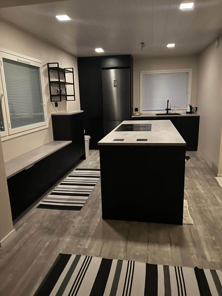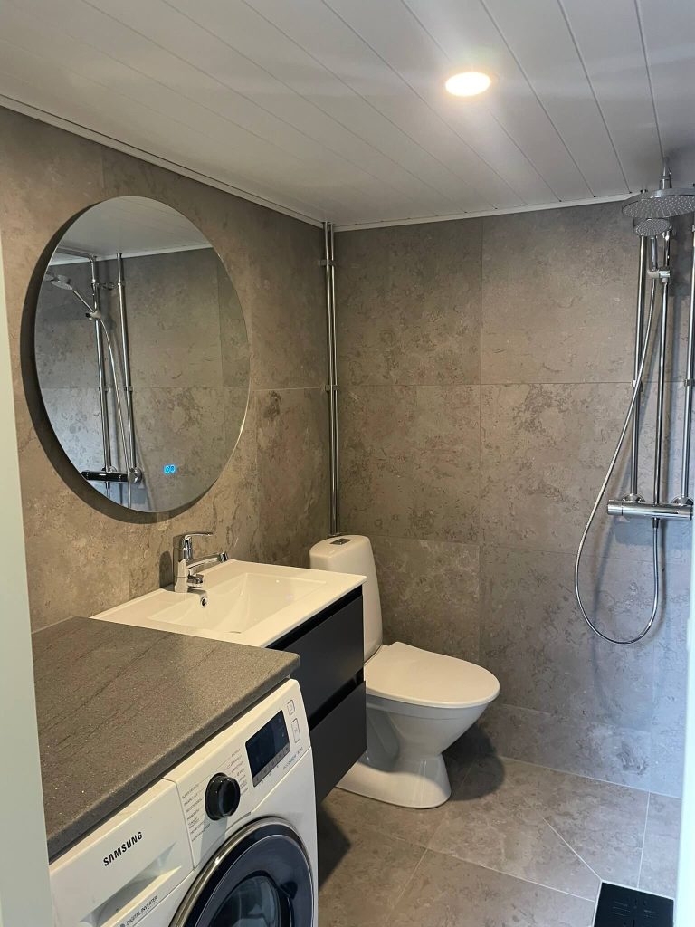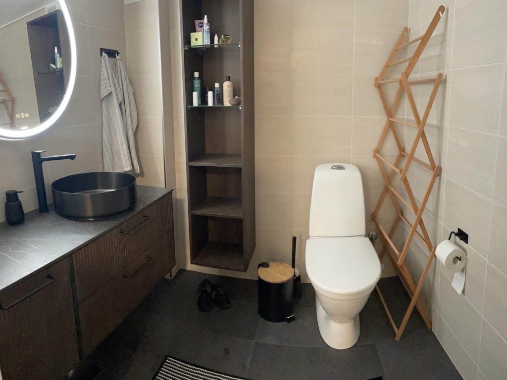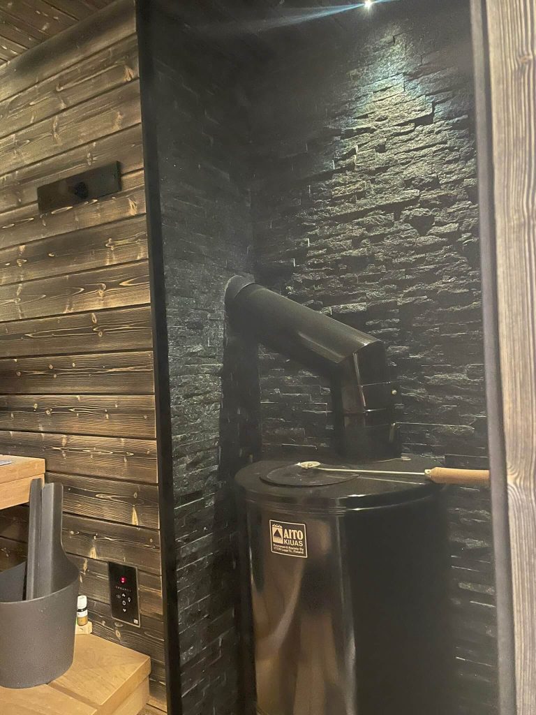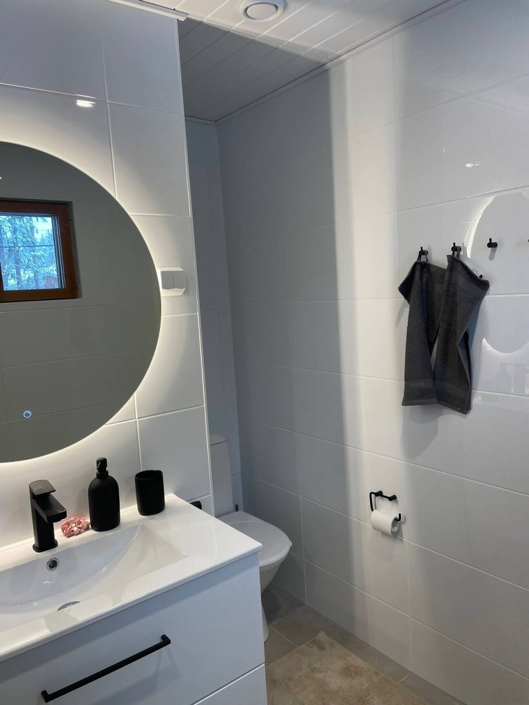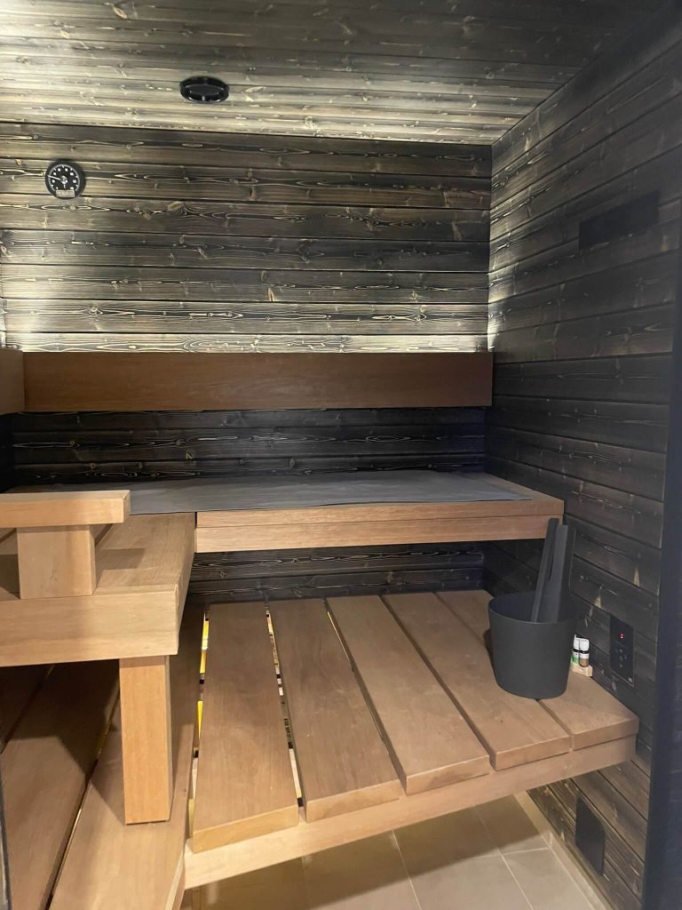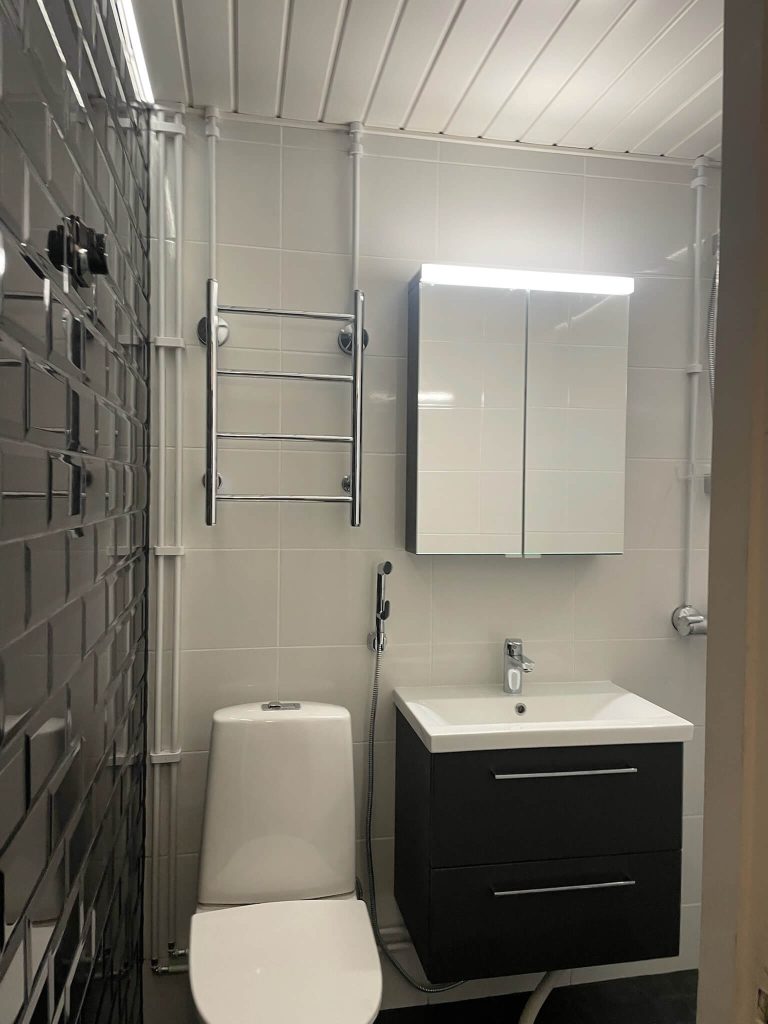 📝 Kuvaus: Teimme kylpyhuoneesta modernin ja sauna toteutettiin asiakaan toiveiden mukaisesti niin että sinne jäi puu sekä sähkökiuas