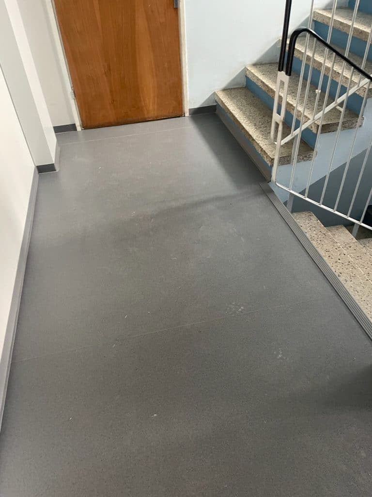 📝 Kuvaus: Uusimme kolme porraskäytävää nykyaikaisilla, kulutusta kestävillä lattiapinnoitteilla. Työt toteutettiin porrastetusti asukkaiden kulkua ja asumismukavuutta kunnioittaen. Kokonaisuus valmistui aikataulussa ja siistillä työnjäljellä.